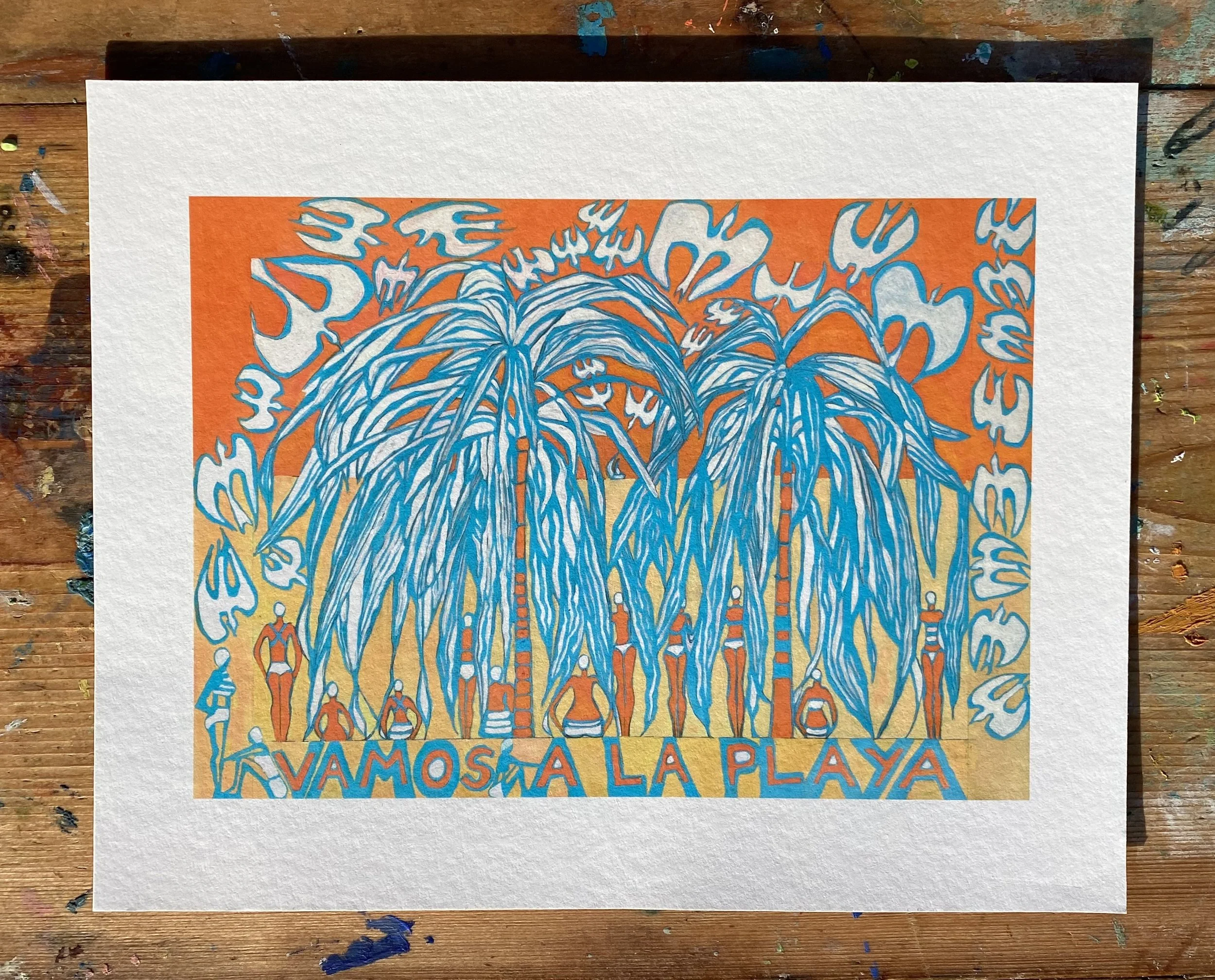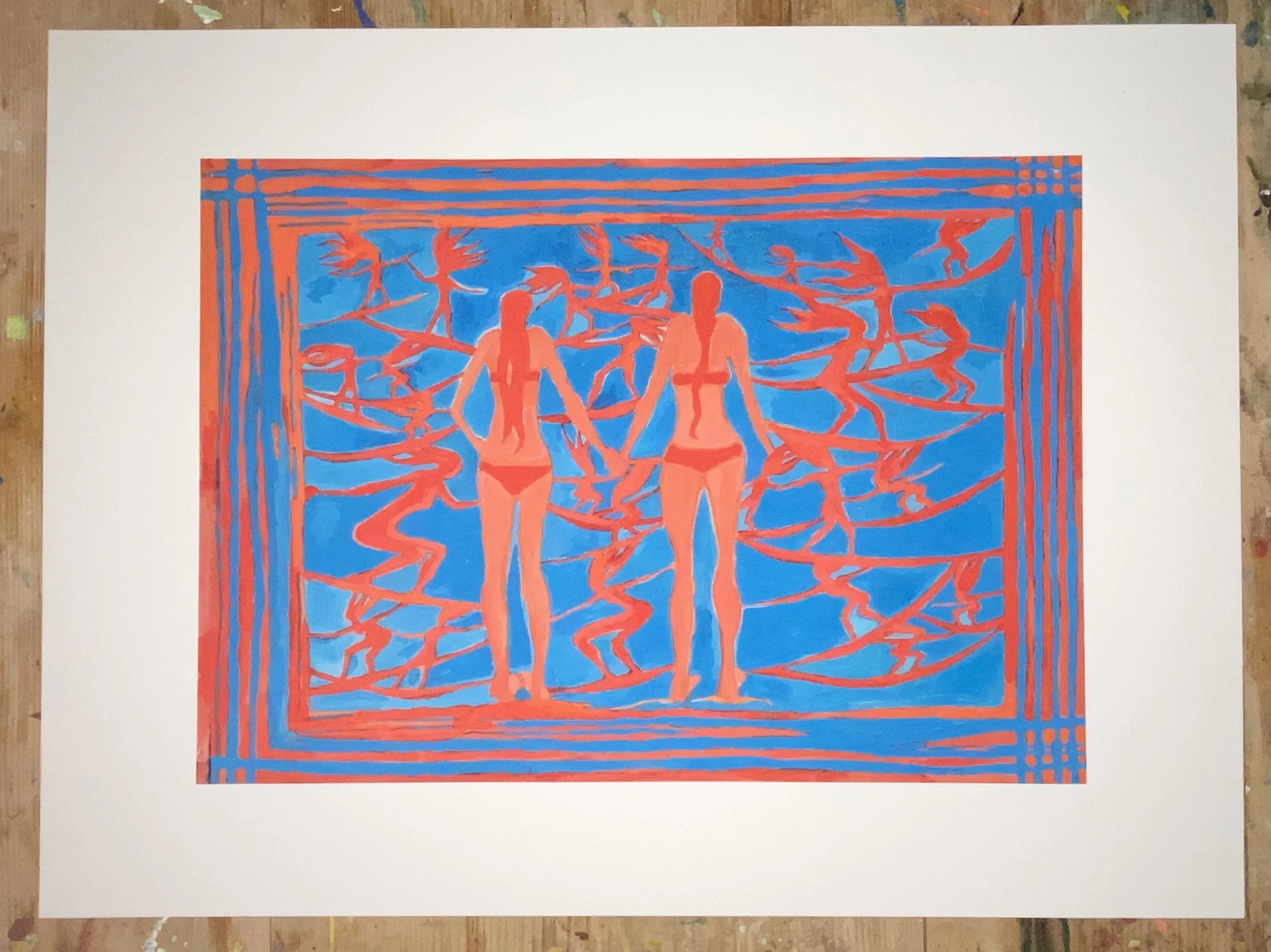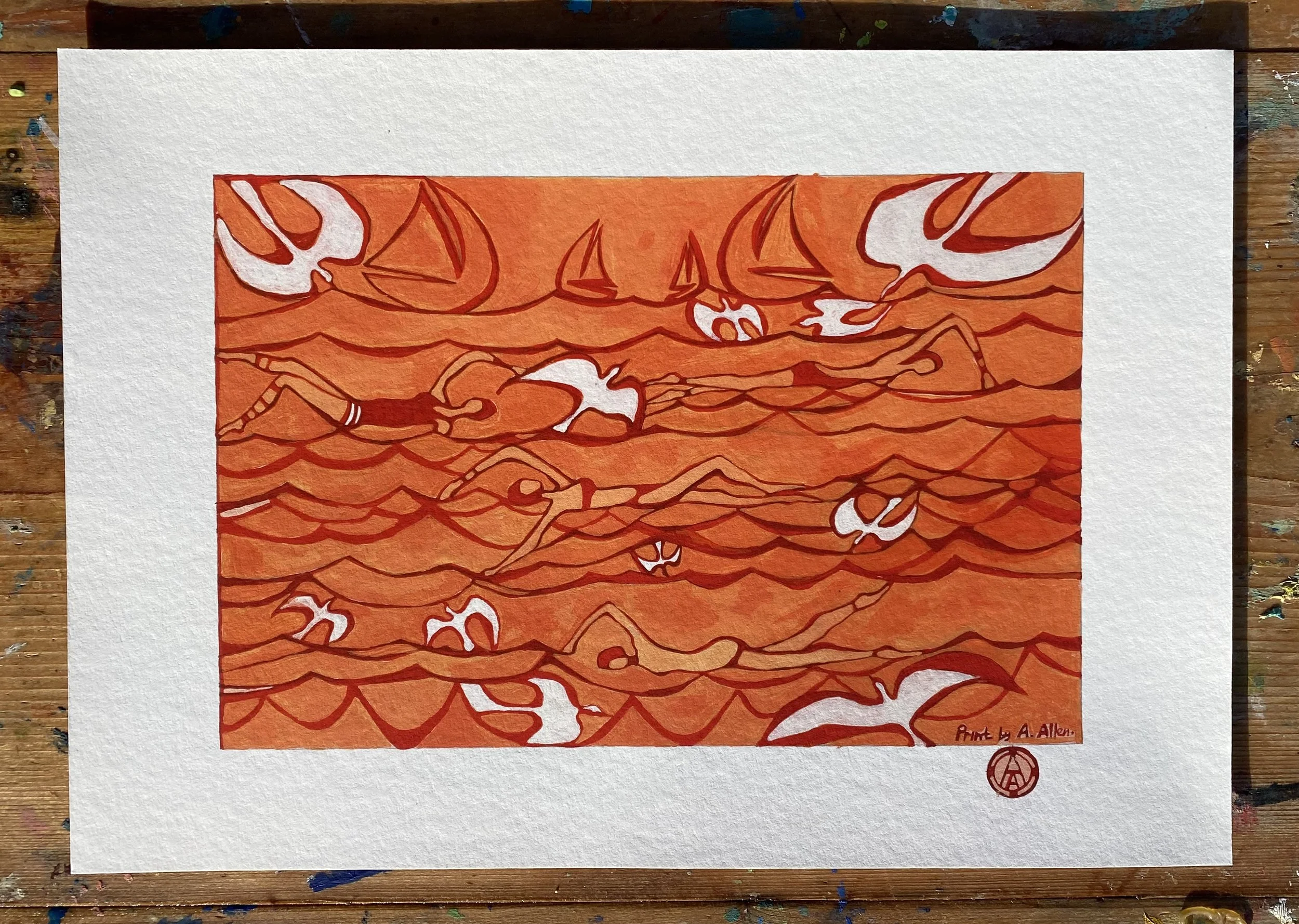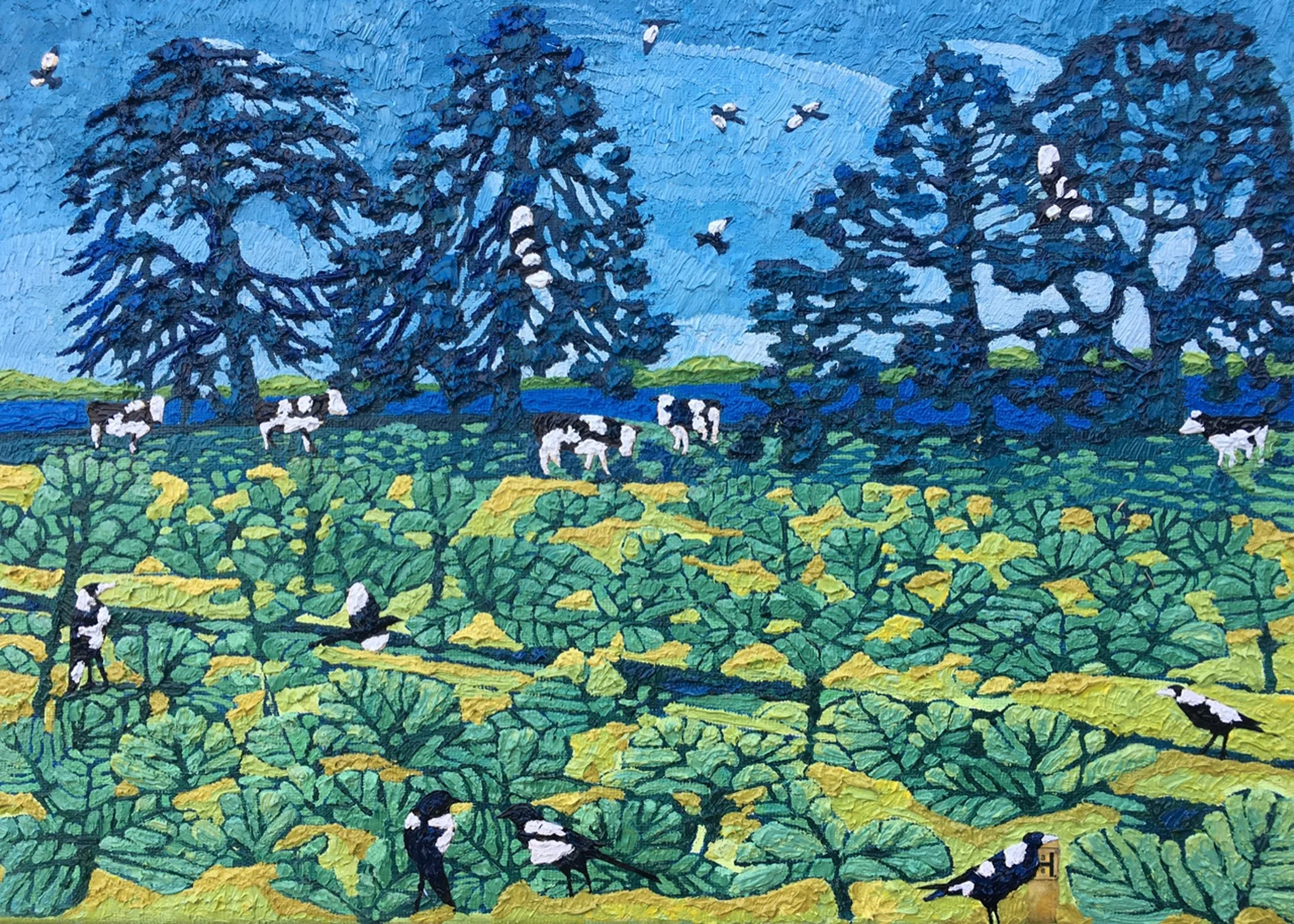 Andrea’s paintings reflect her fascination with the biodiversity of the land and the sea as a subject for her paintings. These imaginative and vivid impressions of the landscape, capture witty observations of animals, birds, and people populating the English coast and countryside. She makes her work using a range of techniques from textured oils, collage, photography and print to describe scenes that are precise and rich in intricate detail. These bucolic images abundant in character and colourful lyricism qualify the original style that makes Andrea’s work so distinctive.